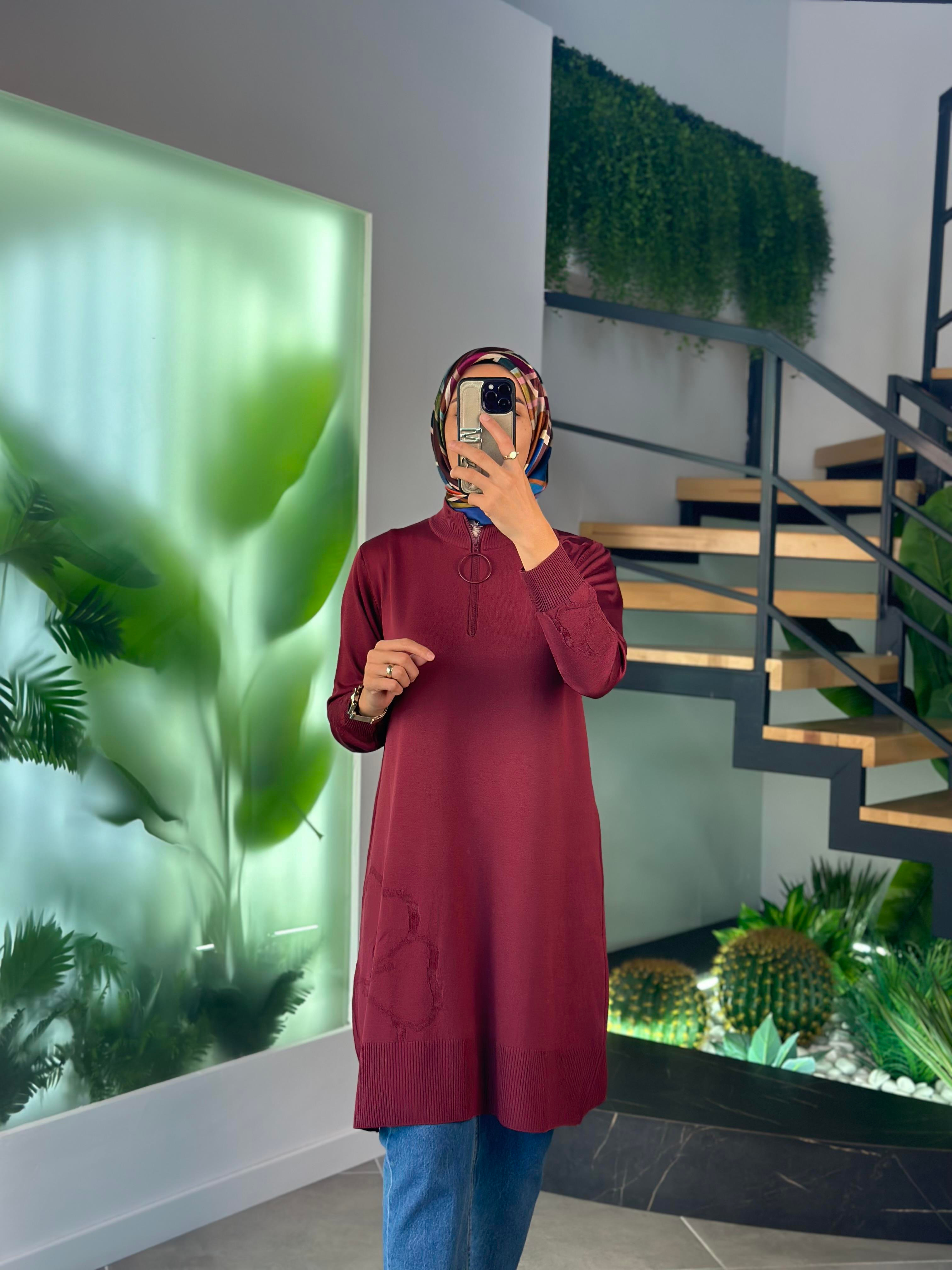 Armine Trend Çiçek Detaylı Merserize Tunik 25YTD4111 Bordo (25YTD4111)