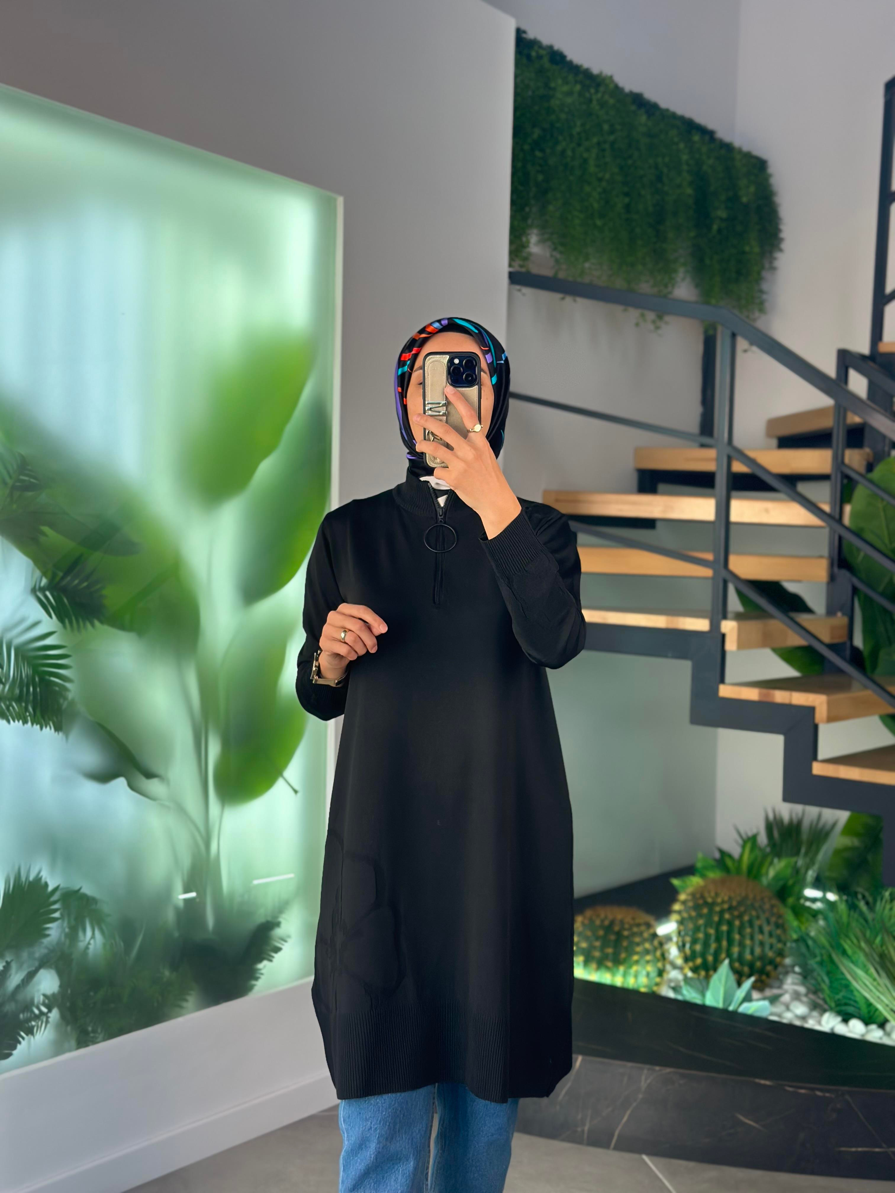 Armine Trend Çiçek Detaylı Merserize Tunik 25YTD4111 Siyah (25YTD4111)