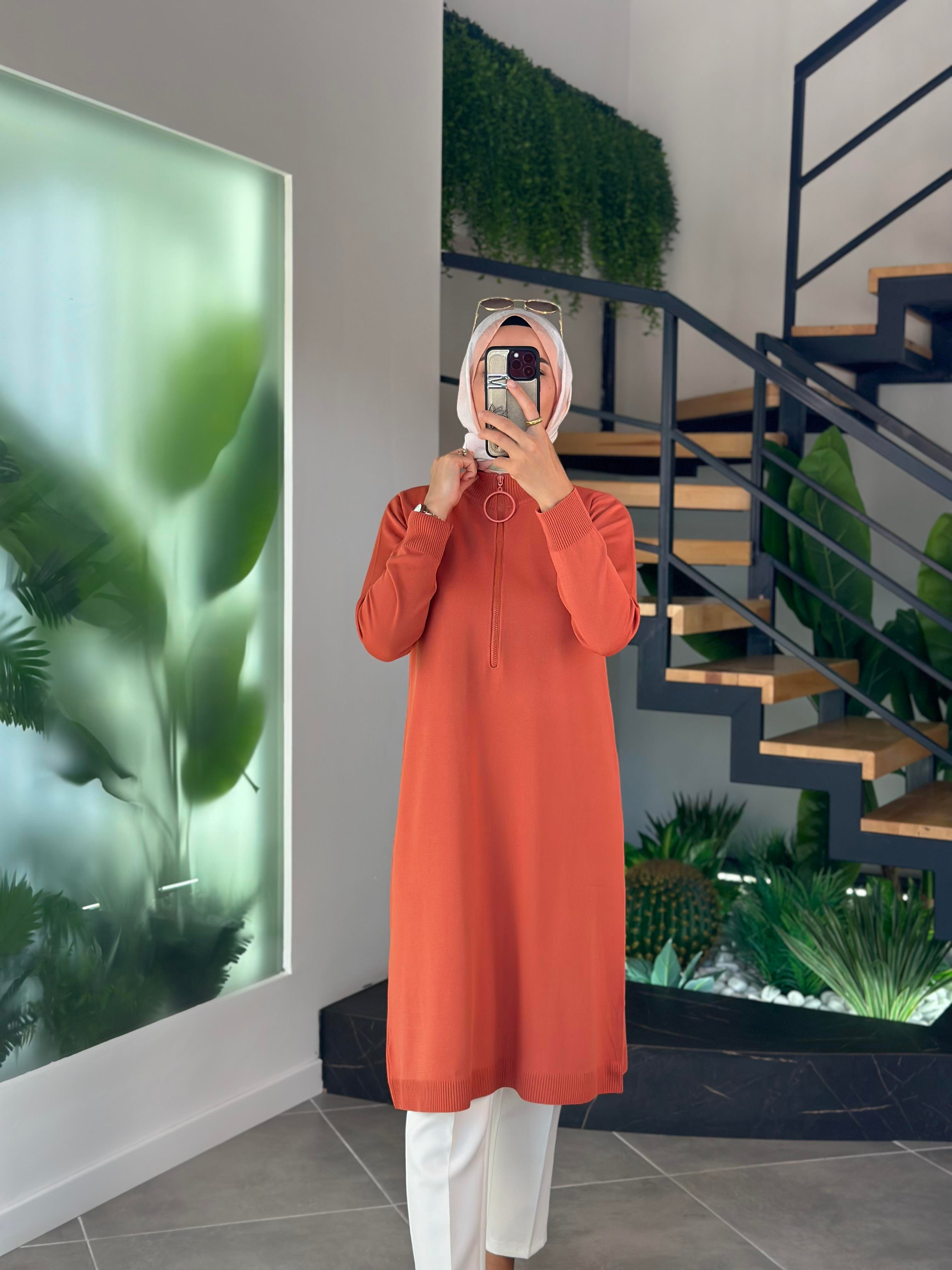 Armine Trend Fermuarlı Triko Tunik 25YTD4113 Şeftali (25YTD4113)