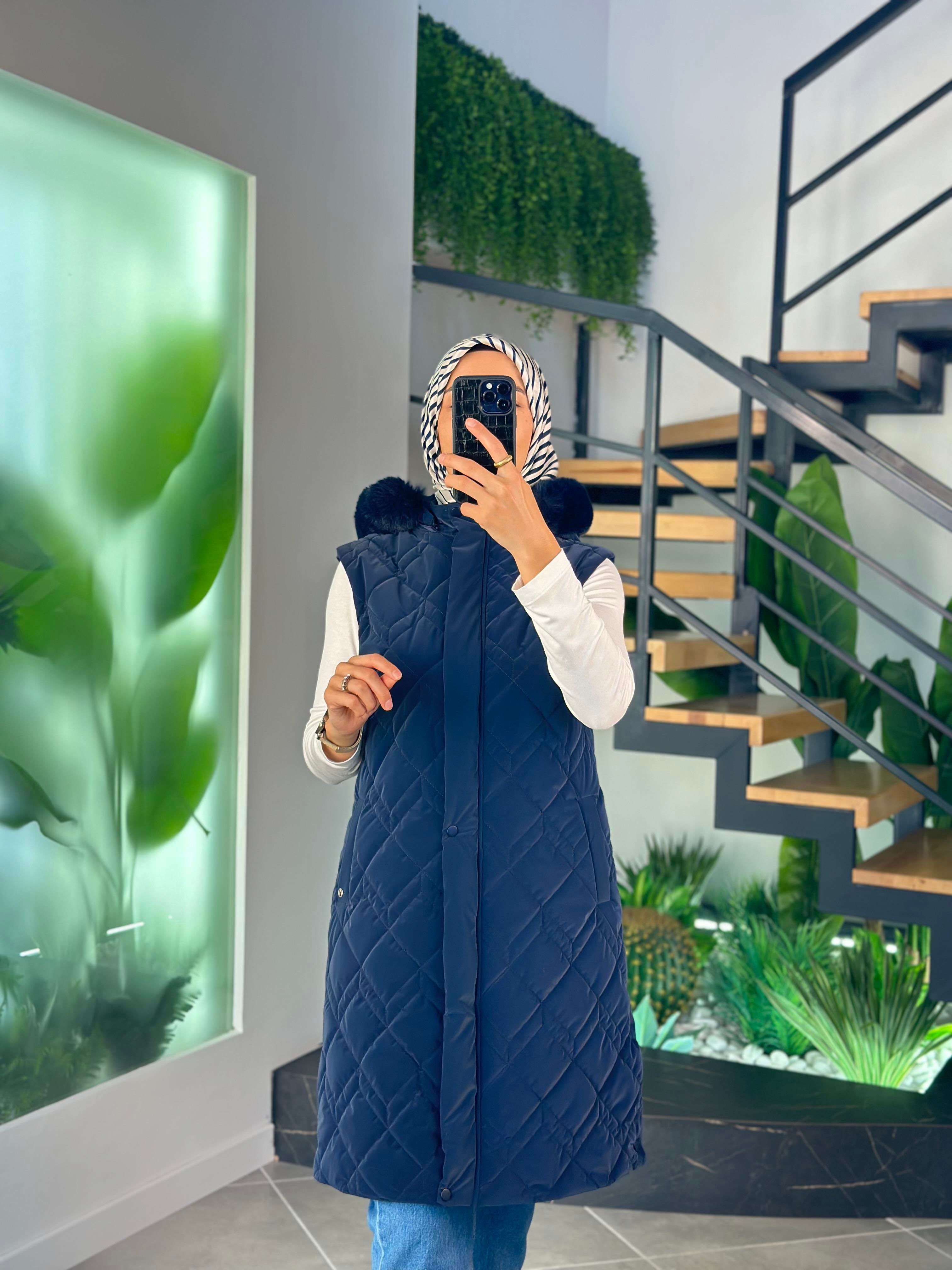 Armine Trend Kürk Kapüşonlu Kapitone Yelek 25KT505 Lacivert