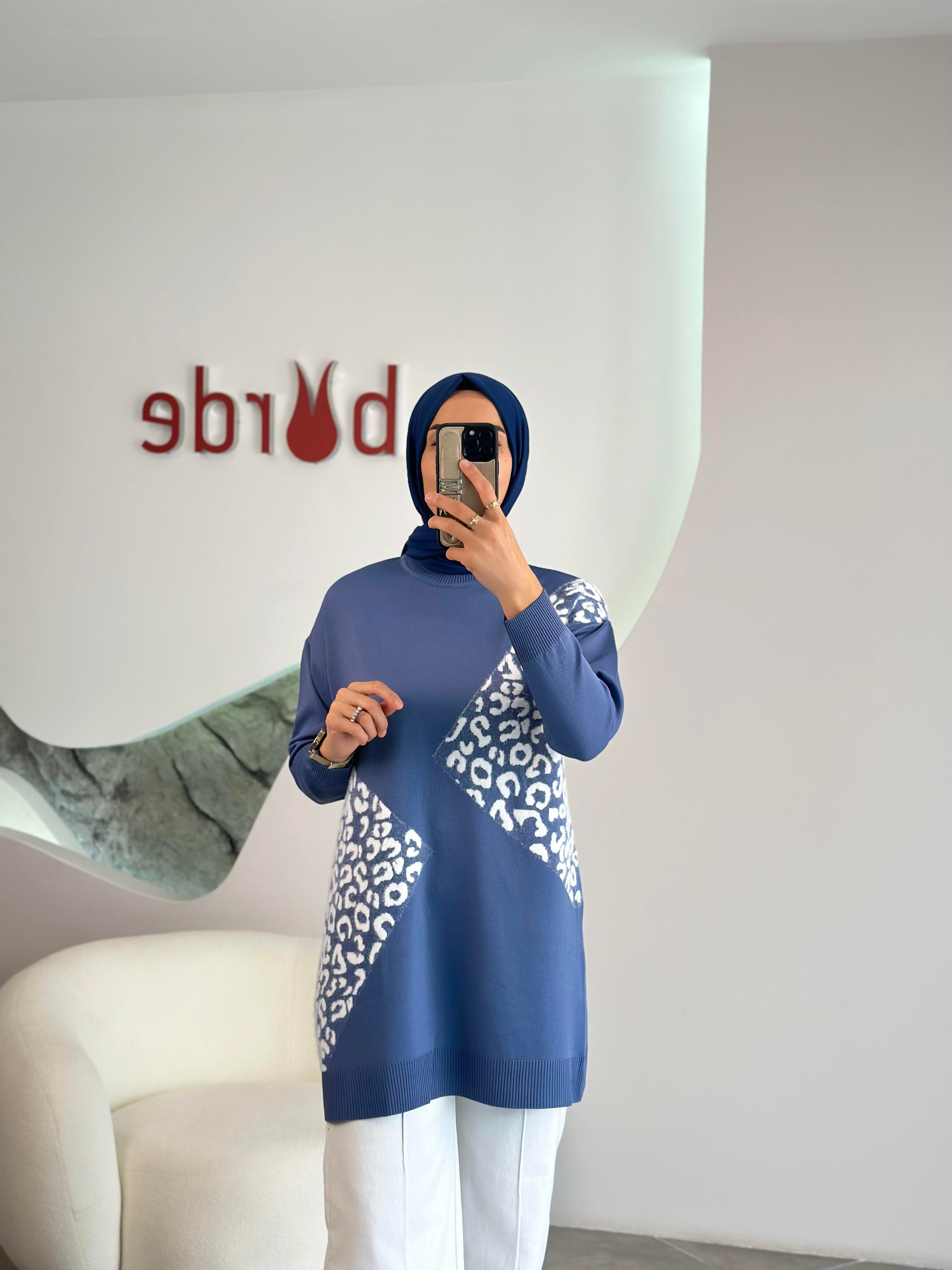 Armine Trend Leopar Desenli Tunik 25YTD4109 İndigo (25YTD4109)