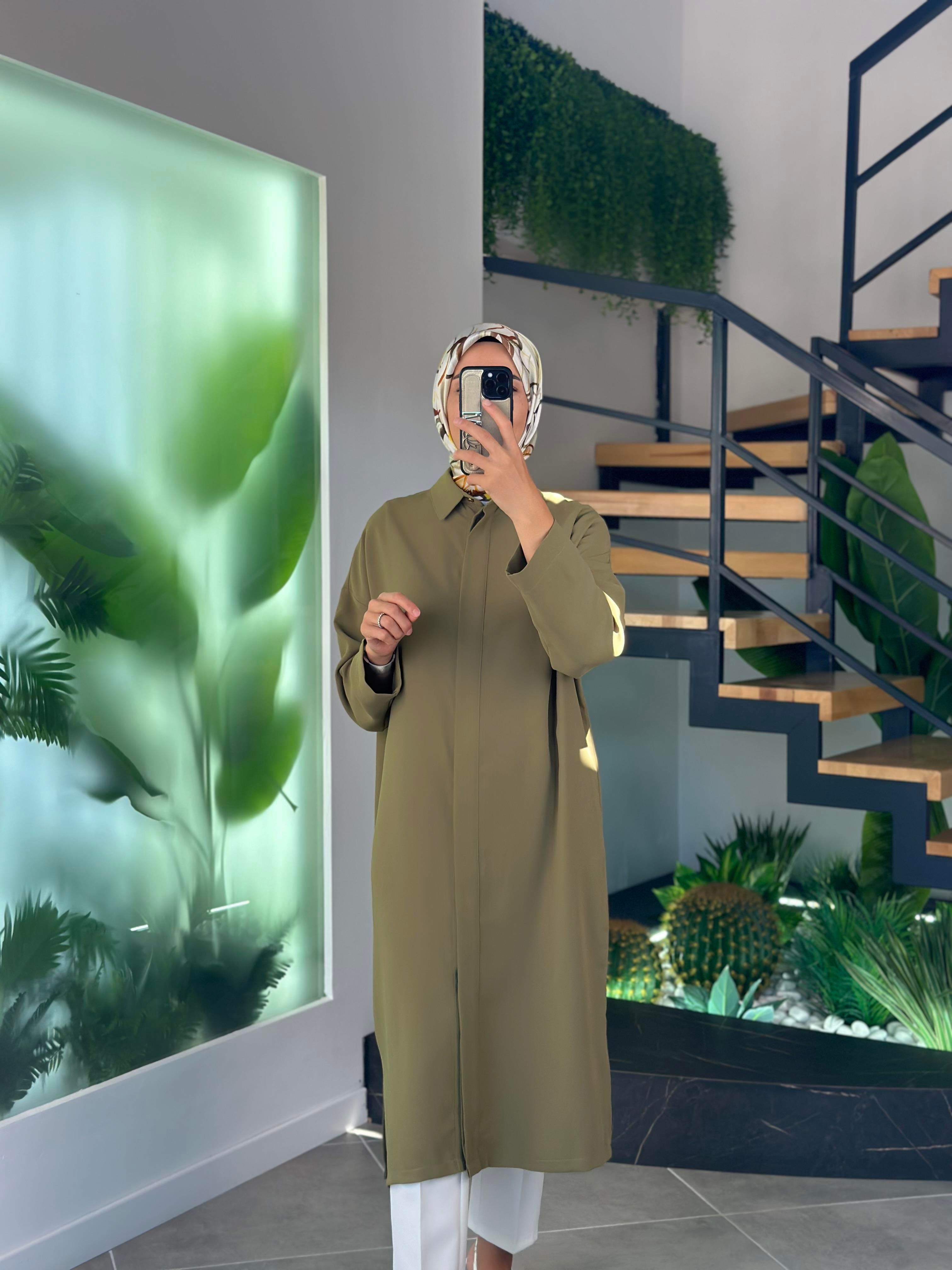Armine Trend Patlı Ve Düğmeli Gömlek 25YT504 Yağ Yeşili (25YT504)