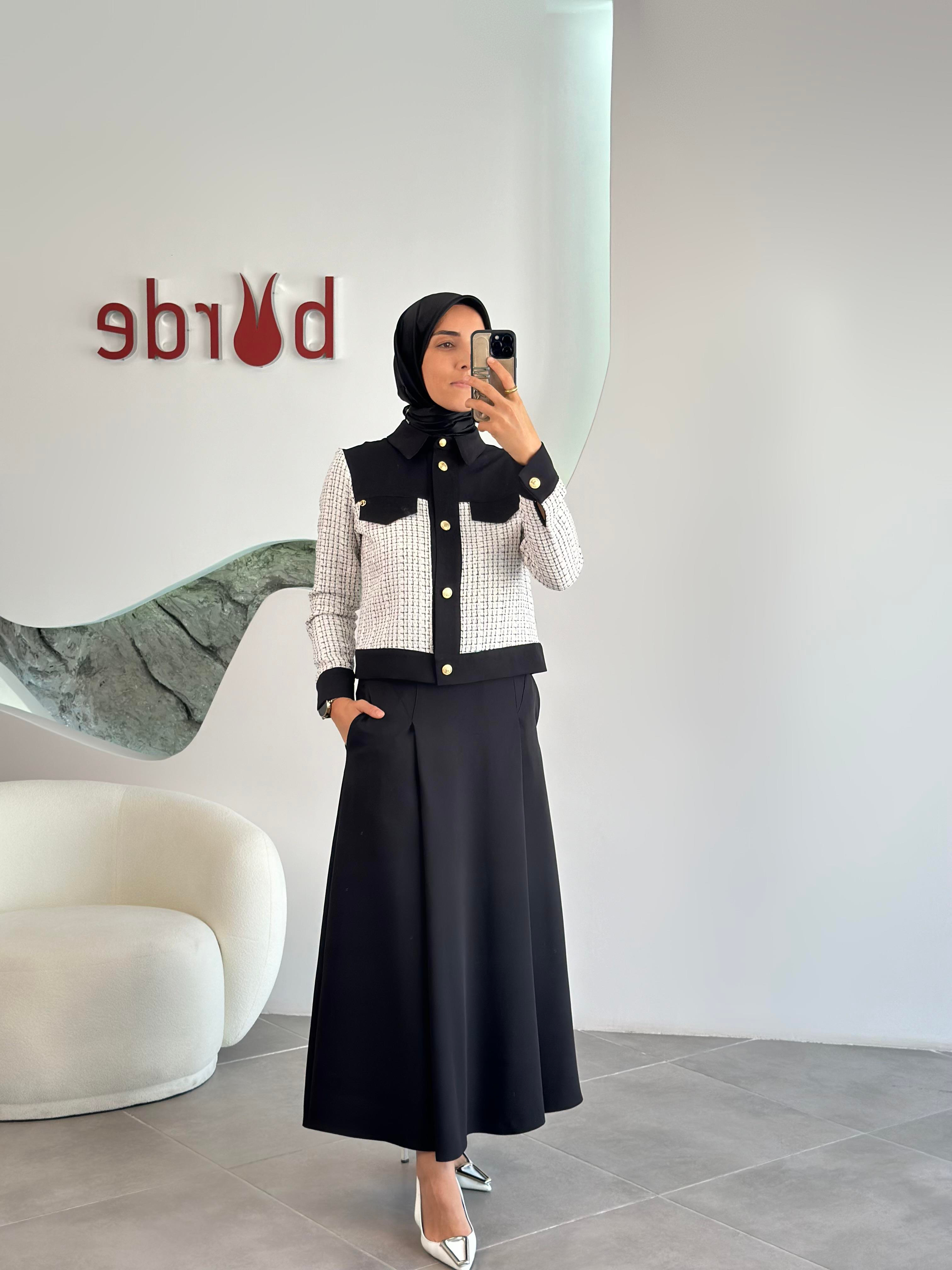 Armine Trend Tüvit Kumaş Garnili Etekli Takım 25KT605 Siyah (25KT605)