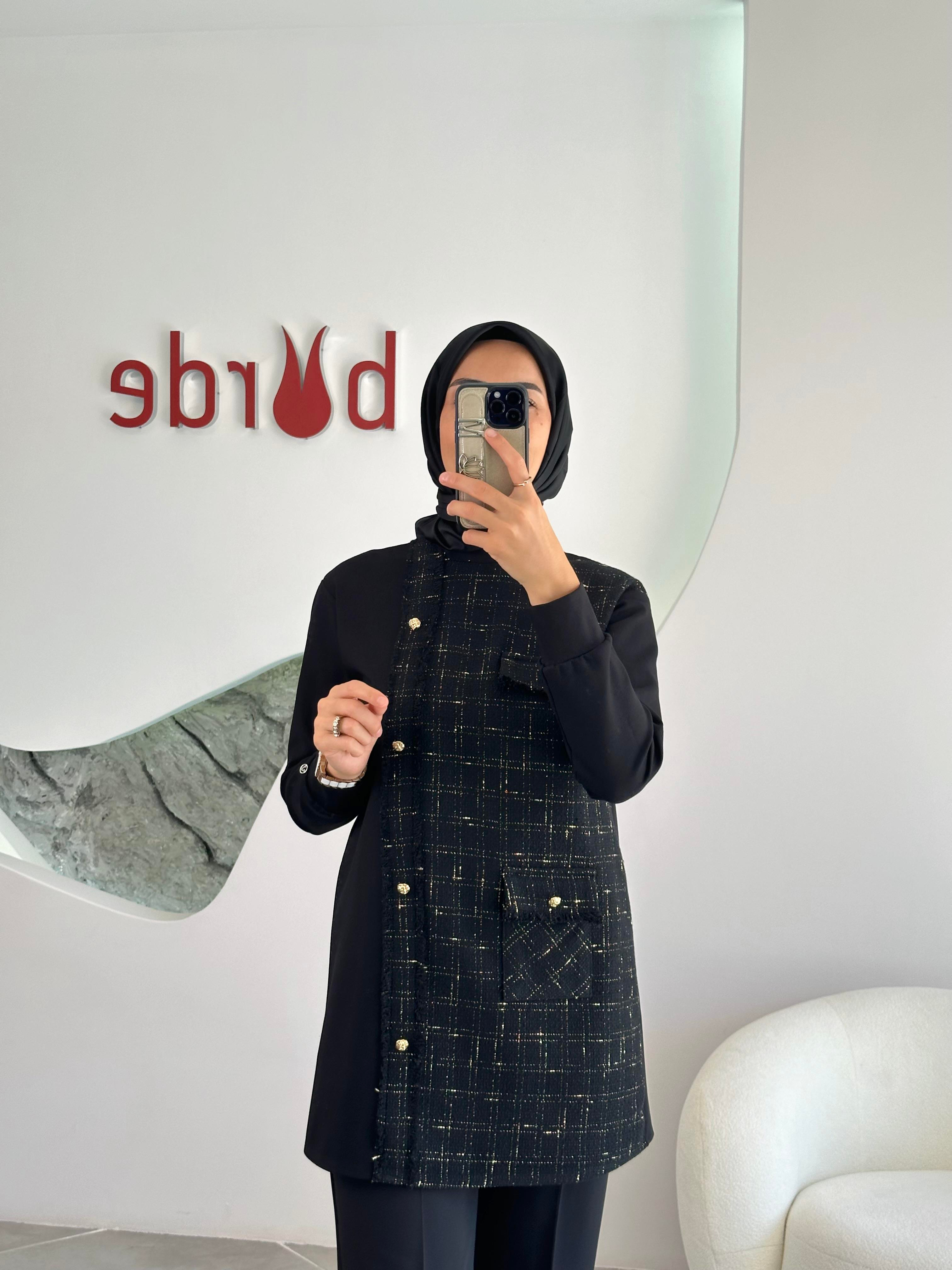 Armine Trend Tüvit Kumaş Garnili Tunik 25KT415-1 Siyah