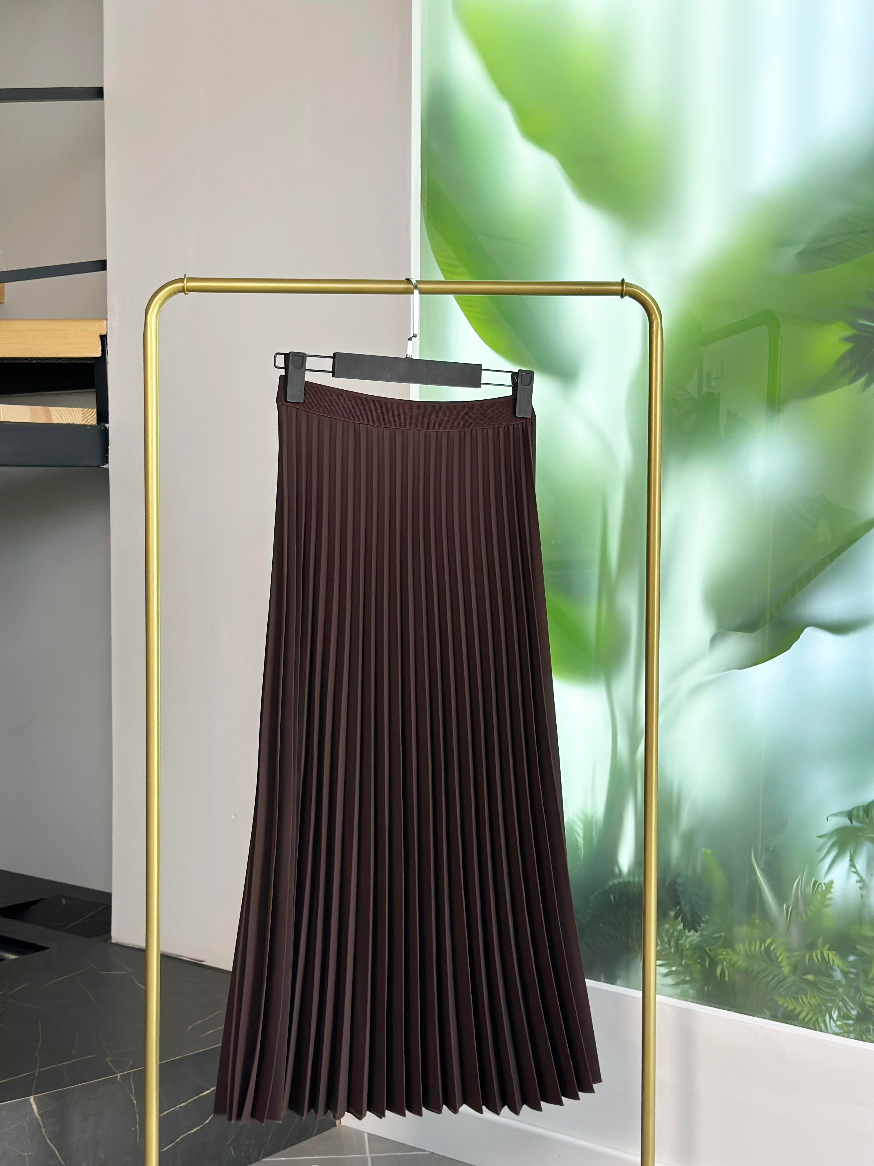 Beli Lastikli Kahve Renk Kadın Piliseli Etek