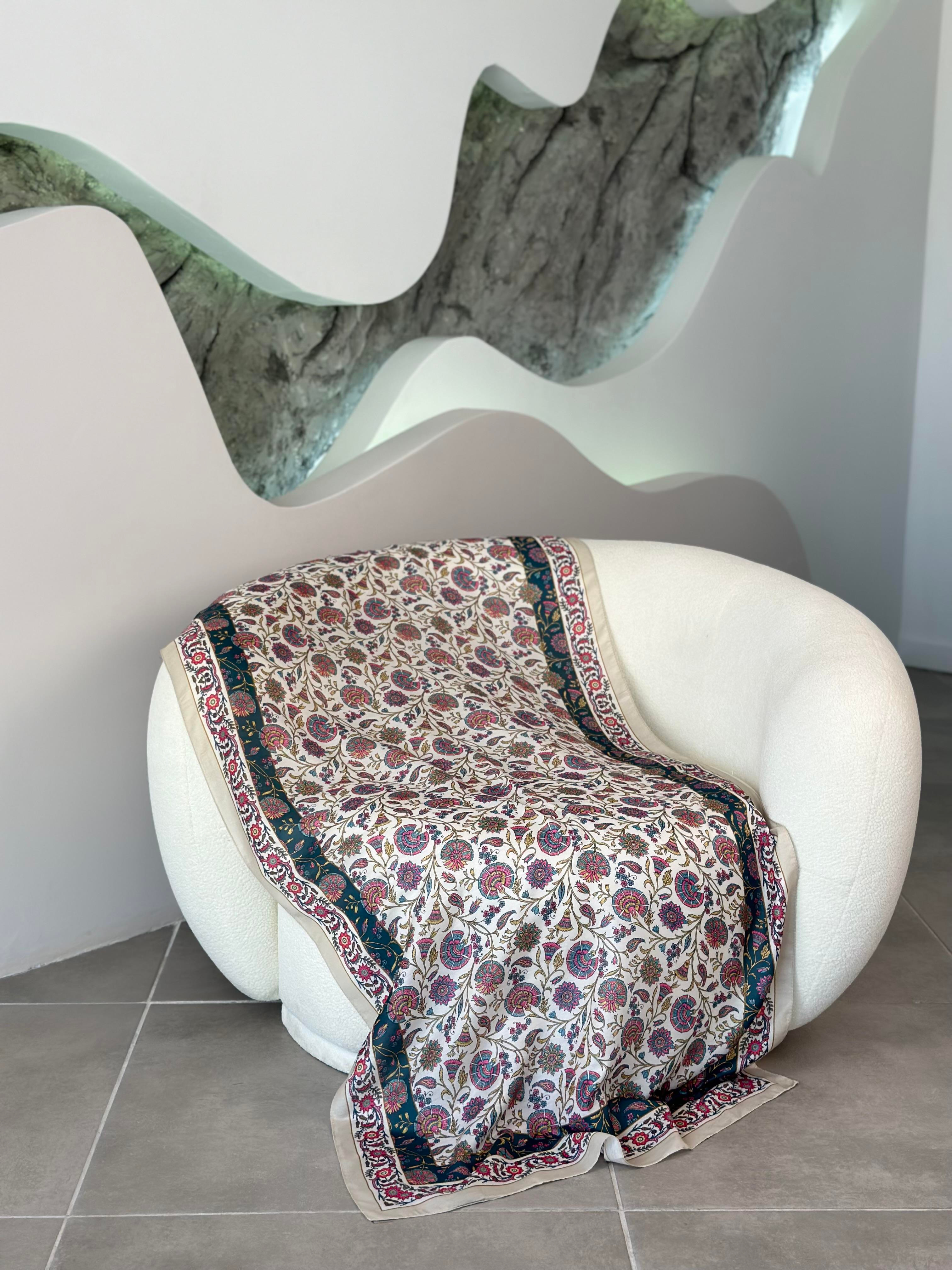 Çini Desenli Soft Şal Bej-Petrol (Kütahya)