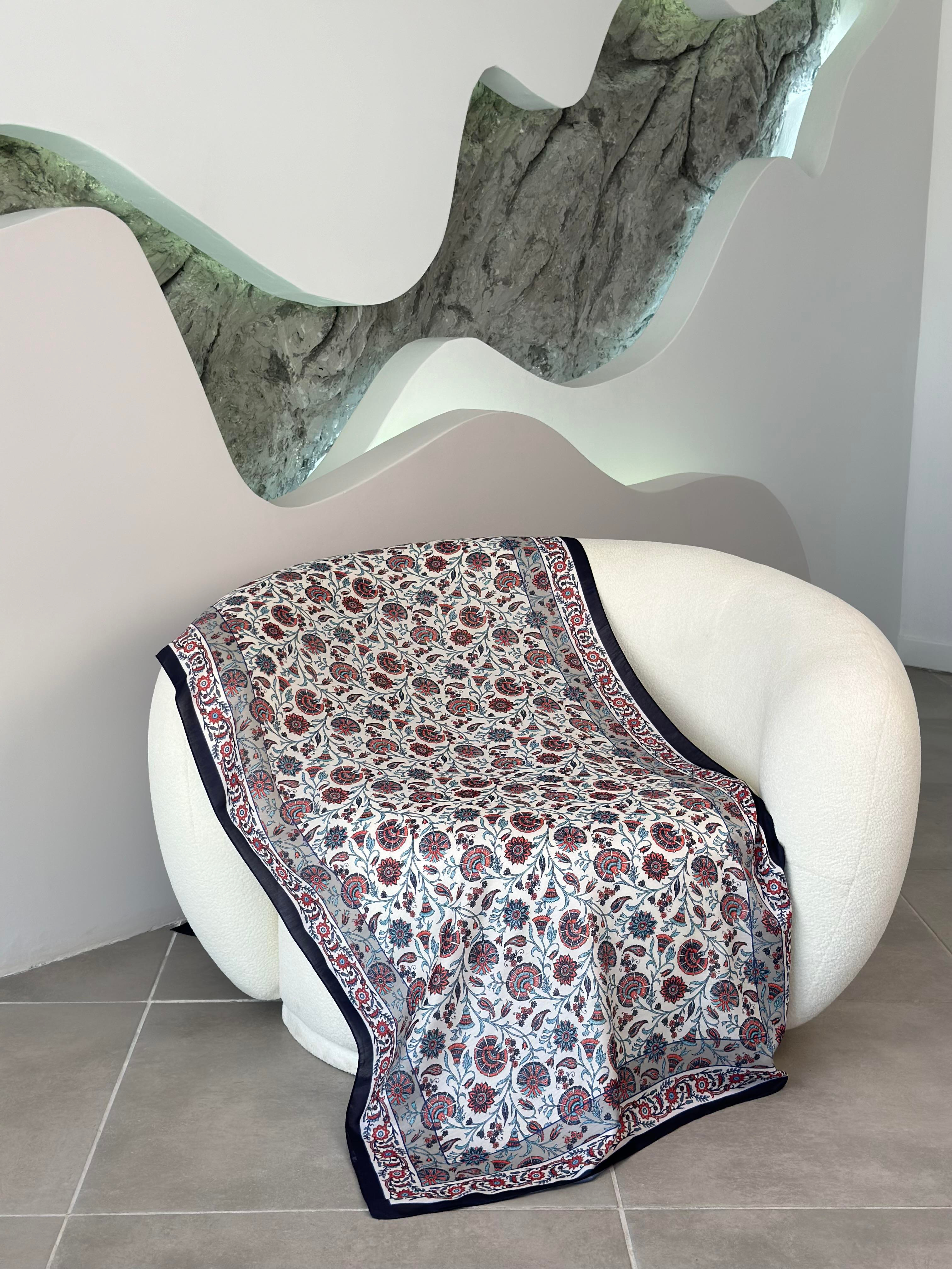 Çini Desenli Soft Şal Lacivert-Kırmızı (Kütahya)