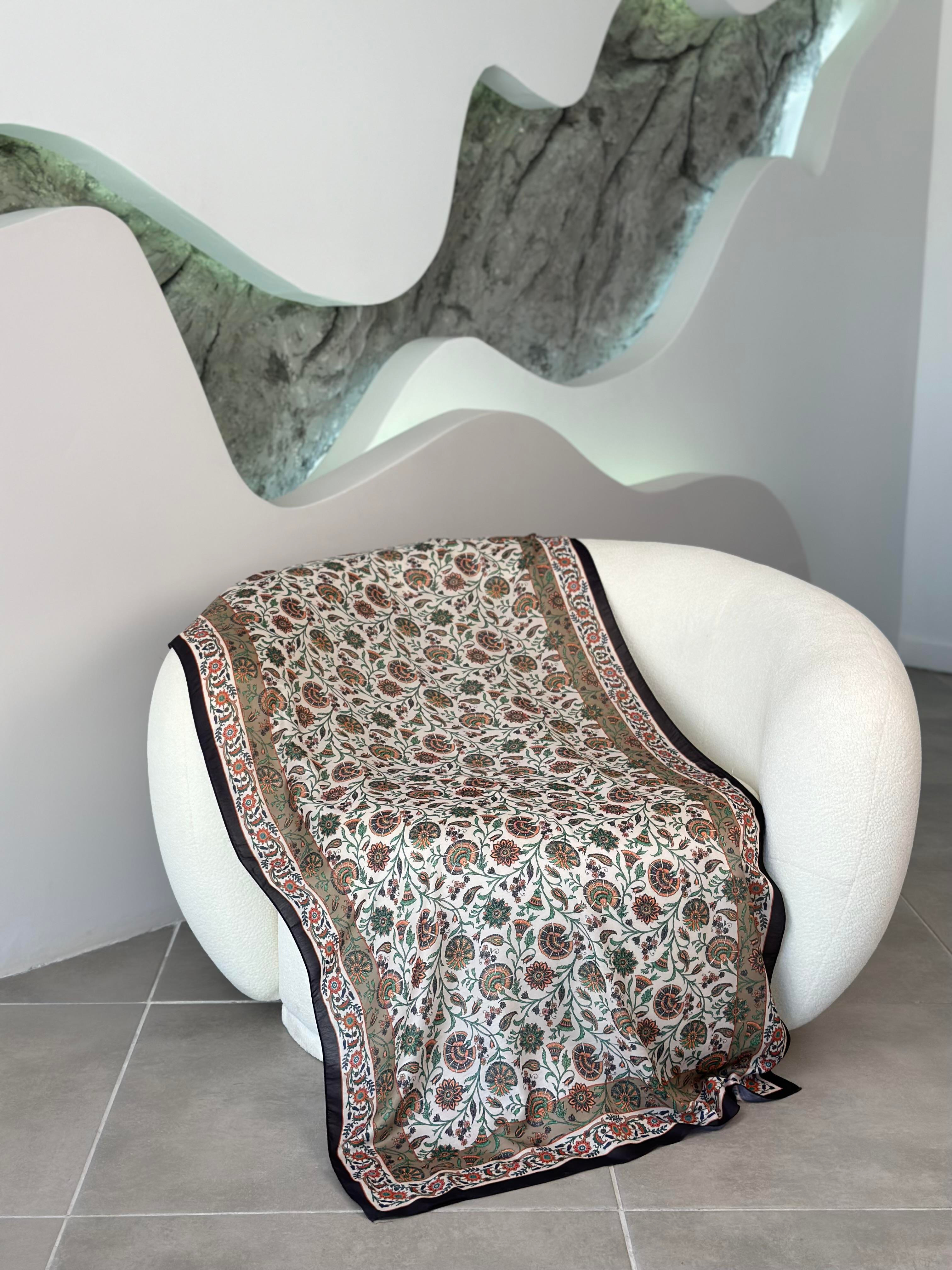 Çini Desenli Soft  Şal Siyah-Yeşil