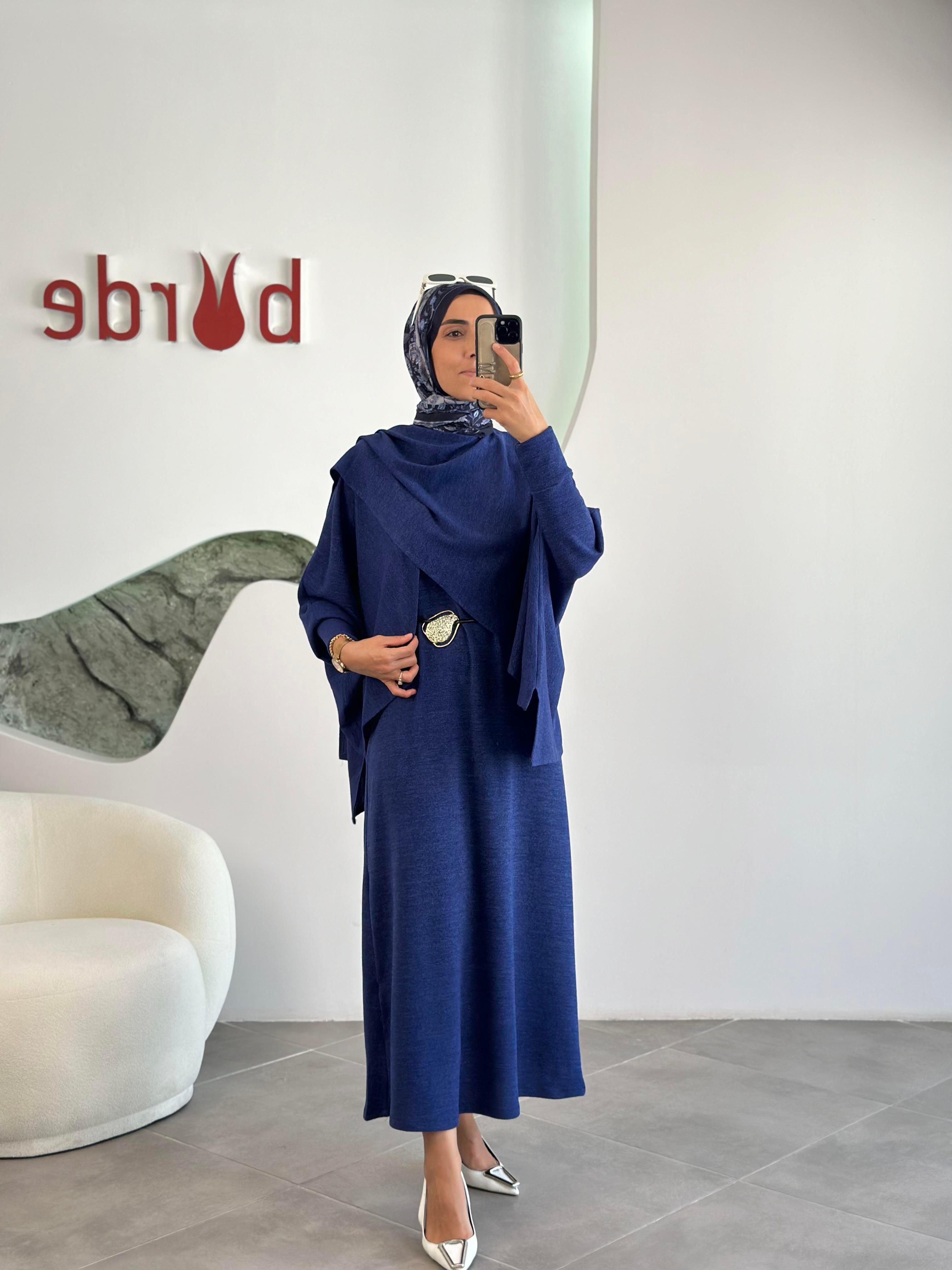 Triko Jile Elbiseli Bolerolu Lacivert Renk Kadın Takım