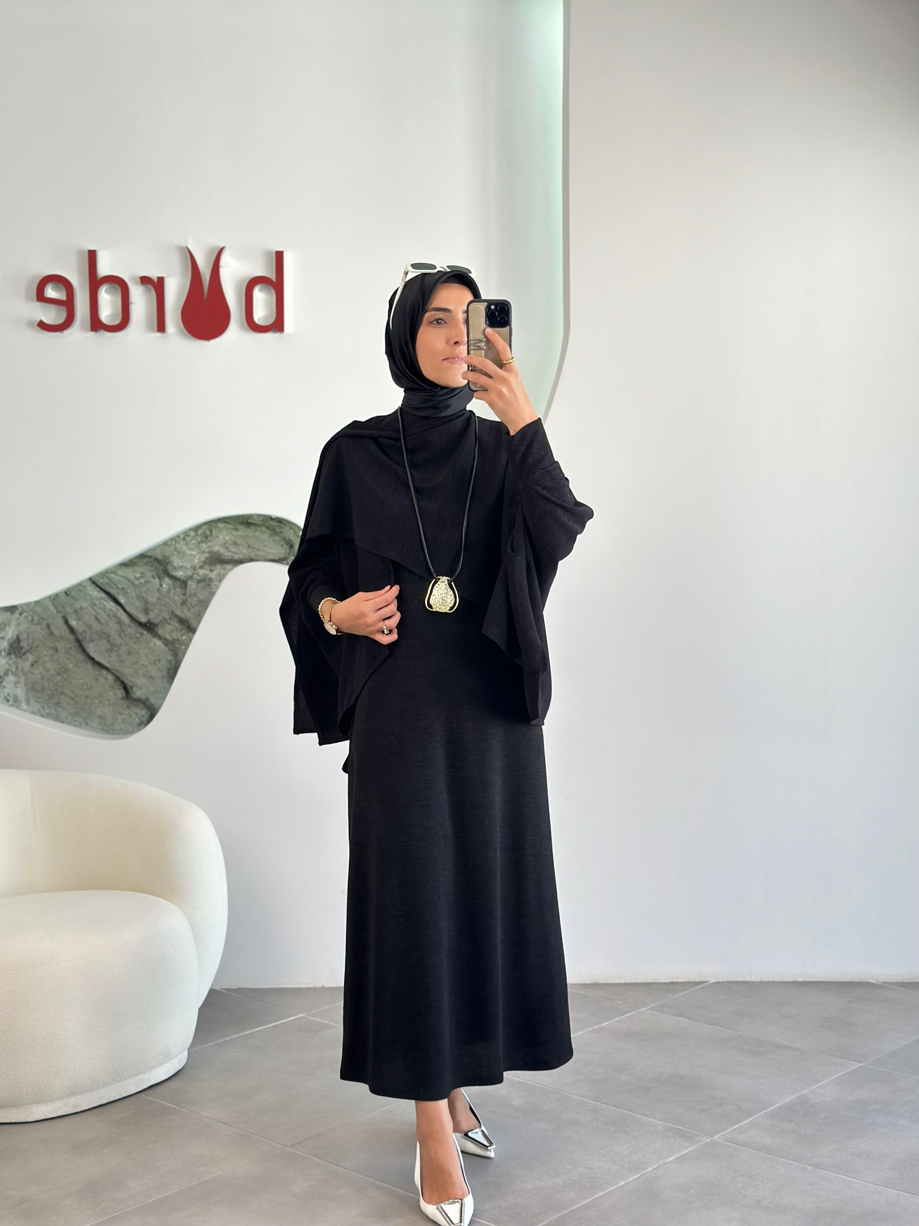 Triko Jile Elbiseli Bolerolu Siyah Renk Kadın Takım